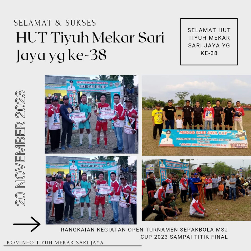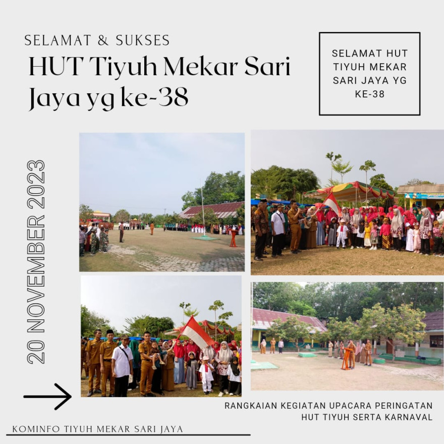 TIYUH MEKAR SARI JAYA - Pemerintah Tiyuh Mekar Sari Jaya Gelar Upacara dan Karnaval Dalam Rangka HUT TIYUH MEKAR SARI JAYA KE-38 TAHUN 2023. Senin pagi (20/11/2023) kali ini kita berbeda, Tahun ini Pemerintah Tiyuh Mekar Sari Jaya Gelar Upacara Sebagai bentuk memperingati HUT Mekar Sari Jaya di...