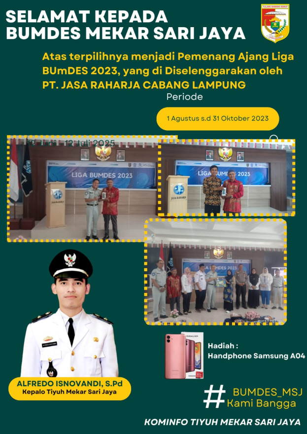 BANGGA! BUMDES MEKAR SARI JAYA PEMENANG LIGA BUMDES 2023 KATEGORI TERFAVORIT SE PROVINSI LAMPUNG OLEH PT. JASA RAHARJA