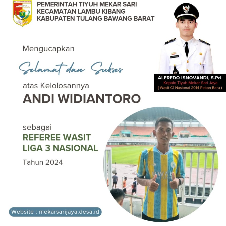 BANGGA, PUTERA TERBAIK TIYUH MEKAR SARI JAYA LOLOS SELEKSI WASIT LIGA 3 NASIONAL