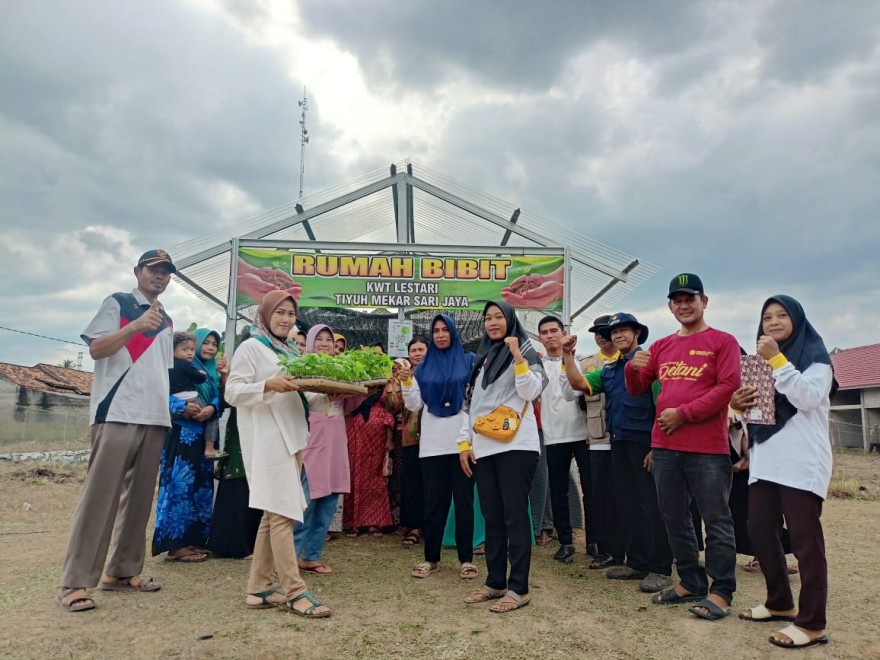 TIYUH MEKAR SARI JAYA - Penyerahan bibit sayuran dari KWT Lestari kepada ketua tim PKK ibu Kepalo Tiyuh agar dimanfaatkan dalam penanaman di lahan-lahan pertanian yang kosong.