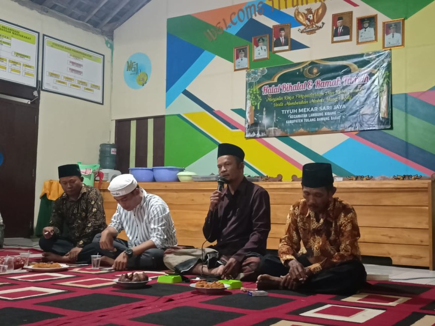 TIYUH MEKAR SARI JAYA - Pemerintah Tiyuh Mekar Sari Jaya Kecamatan Lambu Kibang Kabupaten Tulang Bawang Barat (Tubaba) gelar Halal Bihalal Dan Ramah bersama Aparatur Tiyuh, Kemudian seluruh RT, BPT, Tokoh Agama, Tokoh Masyarakat Tiyuh Mekar Sari Jaya, Rabu (25/05/2022).