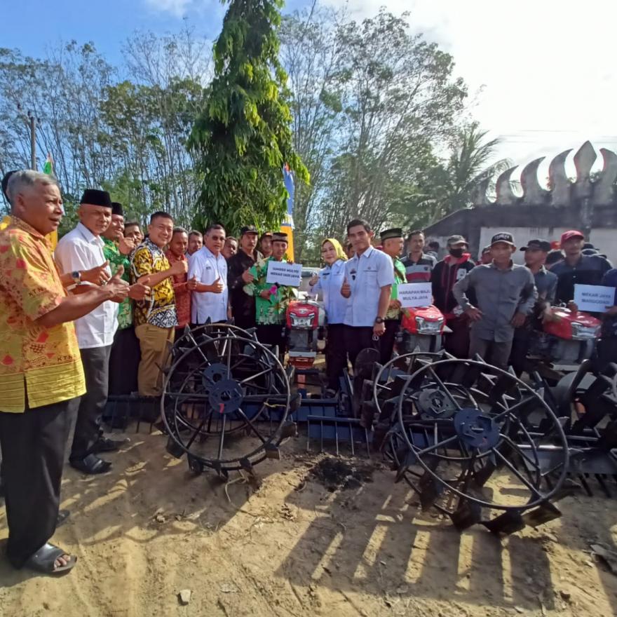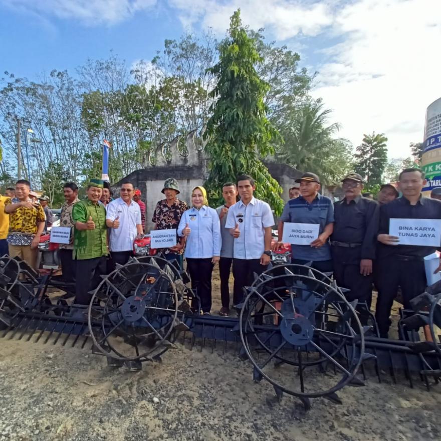 Alhamdulilah, hari ini PJ Bupati Tulang Bawang Barat Ibu DR. ZAIDIRINA. M.Si bersama Anggota DPR RI Komisi IV Bapak Ir. HANAN A. ROZAK, M.S serahkan bantuan alat mesin pertanian berupa Hand Traktor Roda Dua sebanyak 9 unit yang akan diberikan kepada kelompok tani yang mendapatkan nya, bertempat di Balai Tiyuh Mekar Sari Jaya Kecamatan Lambu Kibang Kabupaten Tulang Bawang Barat. Alat mesin pertanian berupa Hand Traktor Roda Dua bertujuan untuk mengatasi permasalahan yang kerap timbul dari penggunaan metode konvensional yang seluruh prosesnya masih mengandalkan tenaga manusia. Handtraktor ini sebagai salah satu bentuk implementasi inovasi teknologi di bidang pertanian, dengan penerapan pertanian modern, para petani dapat menghemat tenaga dan mendapatkan hasil produksi yang lebih banyak dalam waktu yang lebih singkat. Handtraktor ini cocok digunakan untuk daerah di dataran tinggi karena memang didesain khusus sebagai solusi pengolahan lahan terasering dengan bentuknya yang kecil, ringan dan stabil.