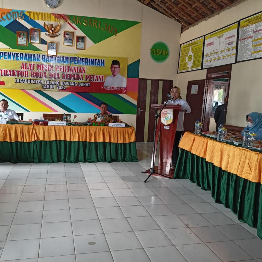 Kami berharap Handtraktor ini digunakan dengan sebaik baiknya oleh anggota kelompok tani yang menerima nya sehingga dapat menunjang kegiatan petani dan penghasilan produktiftas petani semakin fleksibel. Kelompok tani yang menggunakan handtraktor ini diharapkan dapat memanfaatkan, menjaga dan merawat dengan baik bantuan tractor ini. dan terima kasih kepada Bapak Anggota DPR RI Komisi IV yang telah hadir bersama kami. Dengan adanya bantuan traktor ini diharapkan dapat bermanfaat bagi petani khususnya dan kelompok tani pada umumnya dan dapat meningkatkan produktivitas yang nantinya akan meningkatkan kesejahteraan petani. selain daripada itu, kami juga telah bekerja sama dengan Bumdes di masing-masing Tiyuh mohon kerja samanya agar terus komunikasi, dan kami terus monitor dalam kegiatan yang ada di Tiyuh agar kedepan baik itu pembangunan dll untuk mermbangun Kabupaten Tulang Bawang Barat semakin baik lagi. ( Ucap PJ Bupati Tulang Bawang Barat Ibu DR. ZAIDIRINA. M.Si dalam Sambutannya )