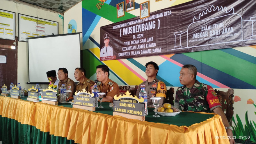 TIYUH MEKAR SARI JAYA - Bertempat di Balai Tiyuh,  Pemerintah Mekar Sari Jaya  melaksanakan giat apel pagi bersama dan dilanjutkan  kegiatan Musyawarah Rencana Pembangunan (Musrenbang) dalam rangka Penyusunan Rencana Kerja Tiyuh (RKPT) Tahun Anggaran 2024. Senin (09/10/2023)