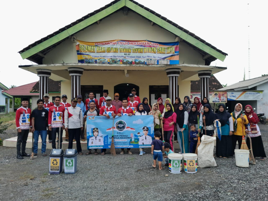 TIYUH MEKAR SARI JAYA - Pemerintah Tiyuh Mekar Sari Jaya beserta seluruh lapisan unsur lembaga di dalamnya ikut serta Memperingati Hari Peduli Sampah Nasional 2023, Jum'at (24/02/2023).