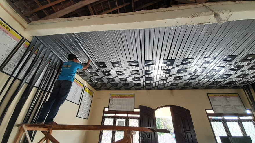 Dengan bangunan yang cukup tua ini, Kami sedikit demi sedikit berbuat sebisa mungkin untuk tiyuh. terutama ruang kerja balai yang dimana ini merupakan aset penting yang berguna untuk memberikan pelayanan yang terbaik kepada masyarakat, balai pertemuan dll. mengingat kami memasang plavon ini agar ruang balai cantik, nyaman dan lantai selalu bersih ketika memberikan pelayanan. (Ucap Kepalo Tiyuh Mekar Jaya Bapak Alfredo Isnovandi, S.Pd )